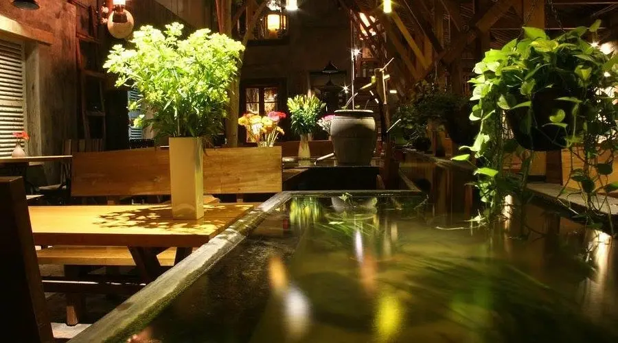 Hầu hết nội thất tại An Café được làm bằng gỗ, tạo nên phông nền hoàn hảo cho những chậu bonsai và cây dây leo được sắp đặt ngẫu nhiên. Trần nhà bằng những tấm ván gỗ xếp san sát, để lại khe hở nhỏ cho ánh sáng tự nhiên len lỏi vào, mang đến cảm giác ấm áp và thoải mái.