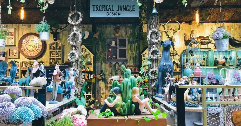 Jungle Coffee gây ấn tượng với cách bày trí tinh tế: những chậu hoa khô, vòng nguyệt quế, tượng gỗ, bình gốm sứ… tất cả đều phủ lên lớp màu cổ điển, tạo nên tổng thể mang đậm chất nghệ. Bộ sưu tập tranh vẽ cùng nội thất tinh xảo bên trong quán càng làm tăng thêm sự cuốn hút, khiến nơi đây trở thành điểm check-in được giới trẻ yêu thích.