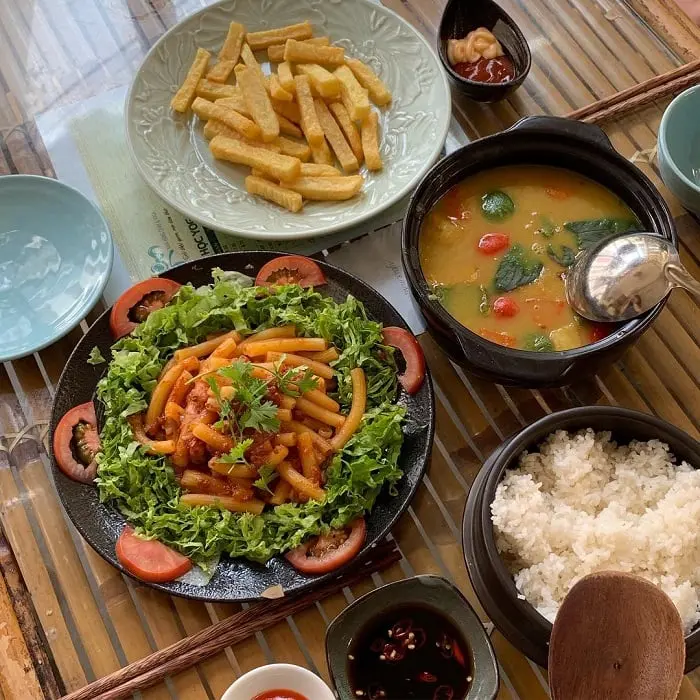 Как и следует из названия, вход в Yên мгновенно дарит ощущение покоя благодаря дизайну с использованием бамбука, ротанга и теплых земляных тонов. Меню разнообразно и предлагает блюда, которые не только вкусны, но и красиво оформлены. Среди фирменных блюд, которые обязательно стоит попробовать, — жареный тофу в фольге и ароматный горячий горшок с ферментированным тофу. Дополнительным очарованием является то, что на верхнем этаже расположена студия йоги — идеально соответствующая экологичному и осознанному образу жизни.